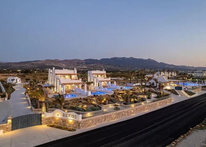 Het 5-sterren Blue Pearls-Adults Only Luxury Suites Kos-stad is op ongeveer 3 km afstand van de Plataan van Hippocrates, het is een hotel met uitzicht over de tuin. Tevens biedt het aparthotel auto's en fietsen te huur om de omgeving te verkennen.